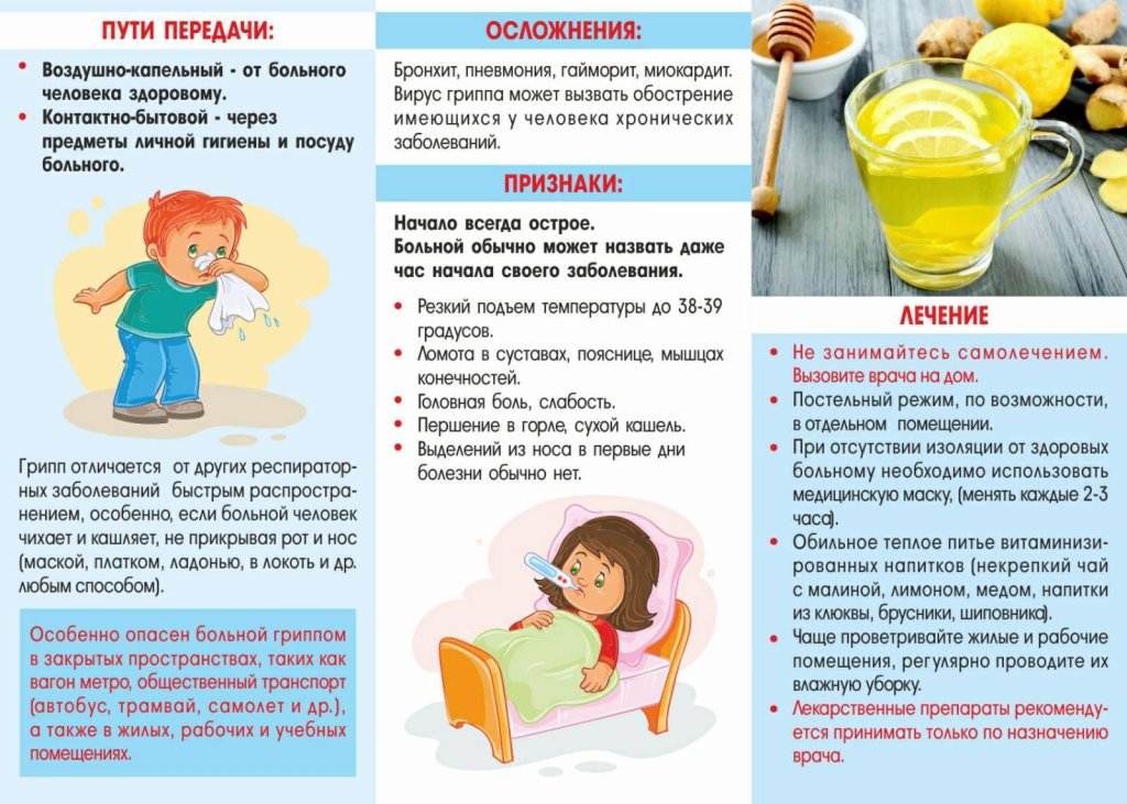 Родители! Ни в коем случае не отправляйте заболевших детей в детский сад, школу, на культурно-массовые мероприятия. При гриппе крайне важно соблюдать постельный режим, так как при заболевании увеличивается нагрузка на сердечно-сосудистую, иммунную и другие системы организма.